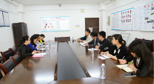 4月15日上午,广东白云学院外国语学院大学英语教学部主任刘琴一行来beat365官网就大学英语课程设置、教学改革等工作进行考察交流。beat365官网宣传统战处处长张圣、外国语学院院长王胜华及各教研室主任接待了刘主任一行。