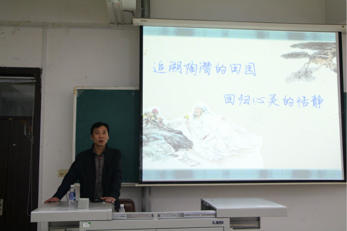 2016年4月20日晚7时在综阶一教室,会计第二学院请学校基础课教学部沈克旻老师为会计第二学院团总支、学生会干部及干事进行了《追溯陶潜的田园 回归心灵的恬静》讲座。