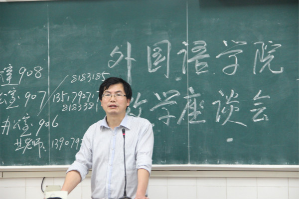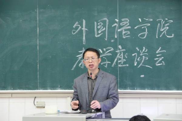 为全面了解外国语学院的专业教学情况,征求学生对外国语学院工作意见和建议,进一步提高外国语学院管理服务水平和人才培养质量,外国语学院于4月20日晚7点,在教学楼701召开了本院专业教学期中座谈会。外国语学院院长王胜华、党总支书记何平滚、商务英语专业教研室主任李辉、大学英语第二教研室主任程颖及外国语学院全体学生代表参加了本次座谈会。大会由办公室主任欧阳倍祥老师主持。