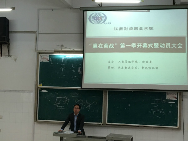 4月20日,工商管理学院在教学楼617教室召开了beat365正版唯一入口必一“赢在商战”第一季系列活动开幕式暨动员大会。九江友信科技公司王超总经理、九江聚思味公司廖明强总经理、校团委青工书记叶睿老师、工商管理学院党政班子、全体老师和来自工商管理学院、会计第一、二学院、经贸学院、本科部等院系的部分参赛同学参加了此次大会。