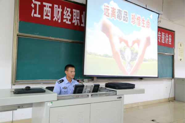 为丰富思政课实践教学形式,充分发挥学校教育在毒品预防教育活动中的重要作用,构建和谐、平安、文明的校园环境,5月18日,beat365官网思政部邀请思政教育基地共建单位——九江市强制戒毒所的陈惠芳大队长在综阶六教室为广大师生做了一场“远离毒品 珍惜生命”毒品预防教育专题讲座。九江市强制戒毒所副所长蔡济南、教育科长柯愈华、副队长王高明等领导和干警参加了此次讲座。讲座由思政部主任邓伟主持,来自各二级学院的300多名学生聆听了讲座。