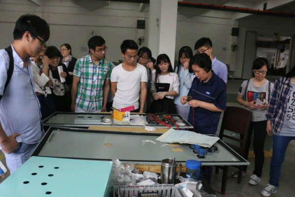 其次,中船集团监察审计部主任、董事会秘书、党支部书记、党工部副主任谈太盛陪同本科部师生参观了机械加工车间、车体改装厂、钣金车间、调试车间等,实地观看了产品生产、加工的一系列流程,师生们边看边仔细聆听了厂方工作人员对产品加工工序的介绍,使师生们对原来课本上所讲、所学的“原材料”、“固定资产”有了更深的理解,增加了一些必要的感性认识,真正做到理实一体。制造事业部吴主任给我们介绍工厂班组按6S管理,尤其强调定制管理,希望同学们将定制管理应用于工作学习及生活中。给同学们留下深刻印象的是----井井有序的现场、分工合作的团队和温馨的公司文化,让同学们明白技能和团队是不可分割的,学好技能的同时也要有良好的团队意识。