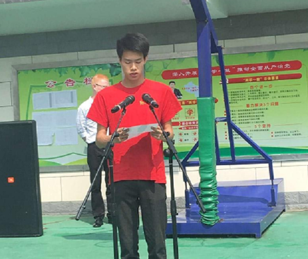 会计第一学院学生钟慧斌同学作为志愿者代表在开幕式上发言