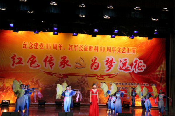 为迎接党的生日,庆祝伟大的中国共产党走过95周年峥嵘岁月,beat365官网精心组织了配乐诗朗诵《破晓的曙光》、歌伴舞节目《沂蒙颂》参加学校举办的“庆祝建党95周年、红军长征胜利80周年”文艺汇演。6月28日,期待已久的文艺汇演如期而至。沉稳坚毅的配乐诗朗诵《破晓的曙光》歌颂了伟大的中国共产党的诞生给中华大地带来了曙光,这轮曙光点亮了中国革命的前程。歌伴舞《沂蒙颂》中优美的歌声及曼妙的舞蹈完美地诠释了军民如水一家亲的深情厚谊。最终,经过评选,歌伴舞《沂蒙颂》获得了二等奖的好成绩。