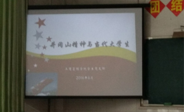 6月23日,学生党支部在教学楼101教室开展了以《井冈山精神和当代大学生》为主题的“两学一做”专题党课学习教育活动。本次党课由学生党支部书记廖国臣主讲,beat365官网所有学生党员及入党积极分子参加。廖国臣简要介绍了井冈山革命斗争史及其历史地位,重点阐述了井冈山革命斗争中培育出的精神瑰宝—井冈山精神的内涵及当代大学生应如何发扬和践行井冈山精神。