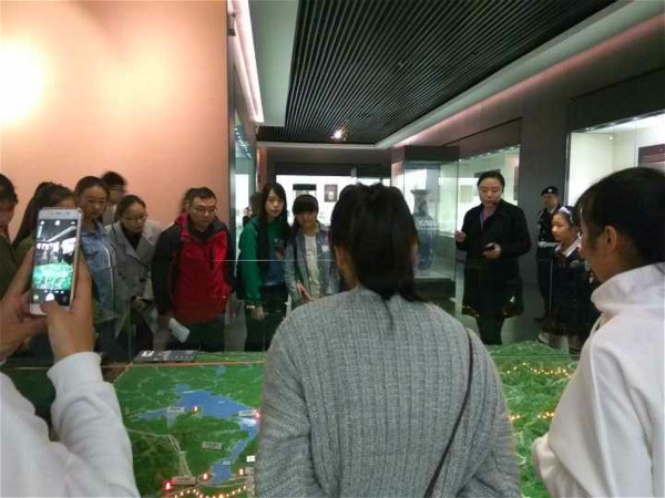 在九江博物馆,同学们跟着导游的讲解追溯了九江的光辉历史和民俗风情,博物馆内新技术与古文化的结合,带给同学们强烈的视觉冲击。