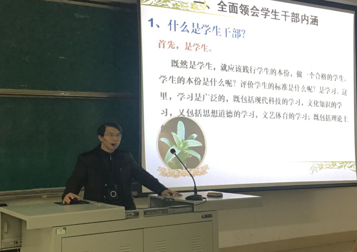 为强化学生工作队伍建设,进一步提升会计第一学院学生干部的综合素质和工作能力,指导学生干部成长成才,11月23日下午4:30在综阶六教室,会计第一学院党总支书记卢洪信教授应邀给本院学生干部作了一场题为《谈谈怎样当好学生干部》的专题教育培训。会计第一学院团总支书记张庆老师及200余名院学生干部共同聆听了此次讲座。