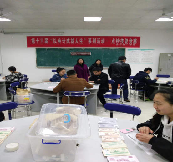 为激发同学们的专业学习兴趣,检验专业技能水平,提高动手操作能力,丰富校园文化生活,2017年3月13日下午,会计第一学院在会计实训中心的会计基本技能实训室举办了第十三届“以会计成就人生”系列活动——点钞技能大赛,来自beat365官网15、16级会计专业和本科部15、16级会计学专业的近160名学生参加了此次竞赛。