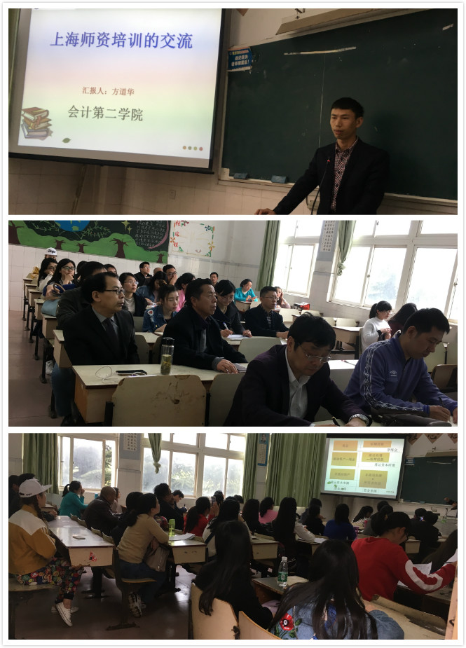4月5日下午,会计第二学院在教学楼202教室开展“党建+”系列活动——教师外出培训交流讲座,本次讲座由方道华副教授主讲,讲座内容为参加上海师资培训后的感想。会计第二学院党政领导、全体教师、行政兼课教师及外聘教师近50余人参加了此次活动。