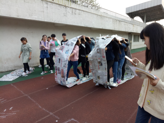 赛场上,参加“无敌风火轮”项目的每组队员都充分发挥团结协作精神,配合默契。“地雷阵”的参赛队员在队友的指挥下顺利避开障碍物到达终点。“背夹球”项目的队员们沉着冷静,稳中求胜。“你比我猜”项目比划者动作夸张,猜题者聚精会神,观众们捧腹大笑,将活动气氛推向高潮。