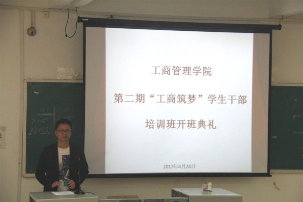 学无止境,厚积薄发。为进一步提升团学干部综合素质,增强团学干部队伍的凝聚力和战斗力,工商管理学院于4月26日在综合楼阶梯教室二举办了第二期“工商筑梦”学生干部培训班开班典礼暨学生干部培训讲座。校团委书记李智、工商管理学院党总支书记胡红霞教授及工商管理学院教师杨丽梅、金晶出席了开班典礼,工商管理学院团总支学生会全体学生干部及16级各班主要班干部参加了此次培训。开班典礼由院党政办主任、团总支书记廖国臣主持。