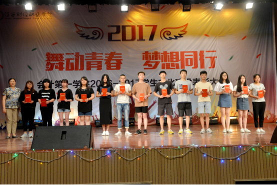 2017年5月26日晚,会计第一学院在beat365官网英才交流中心举办了“舞动青春,梦想同行”文艺演出暨2016——2017学年学生文化建设表彰大会,会场内充满了喜庆的气氛,洋溢着青年学子火热的激情,现场文艺节目使得表彰大会充满了欢庆气氛。