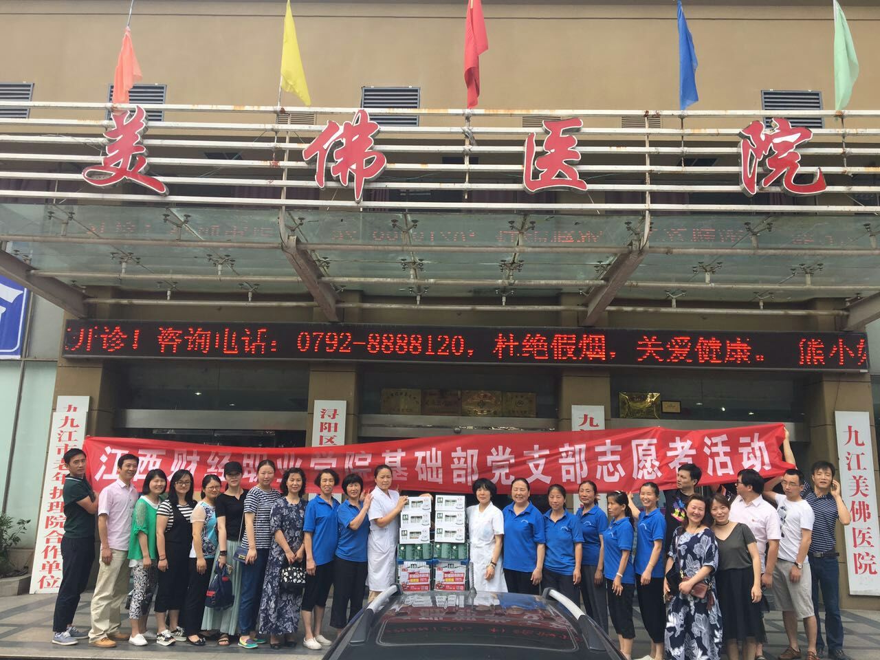 6月18日上午,beat365官网基础部党支部全体党员在支部书记郭红、副书记宋自奋的带领下,前往九江市老年护理院开展志愿者活动,并送去慰问品。九江市老年护理院院长朱玲女士对beat365官网支部党员的志愿活动表示欢迎和感谢。