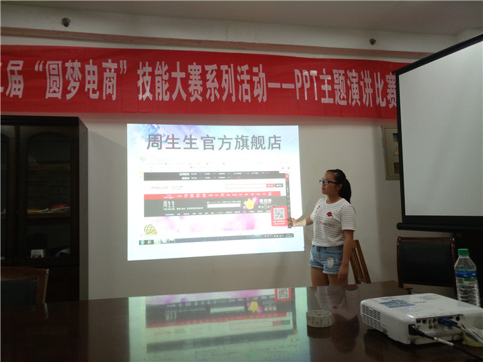 2017年6月20日晚,经济贸易学院在综合楼804举办第二届“圆梦电商”大赛之PPT演讲比赛。办公室主任崔晓慧老师,电子商务协会会长刘清清等参加了活动。