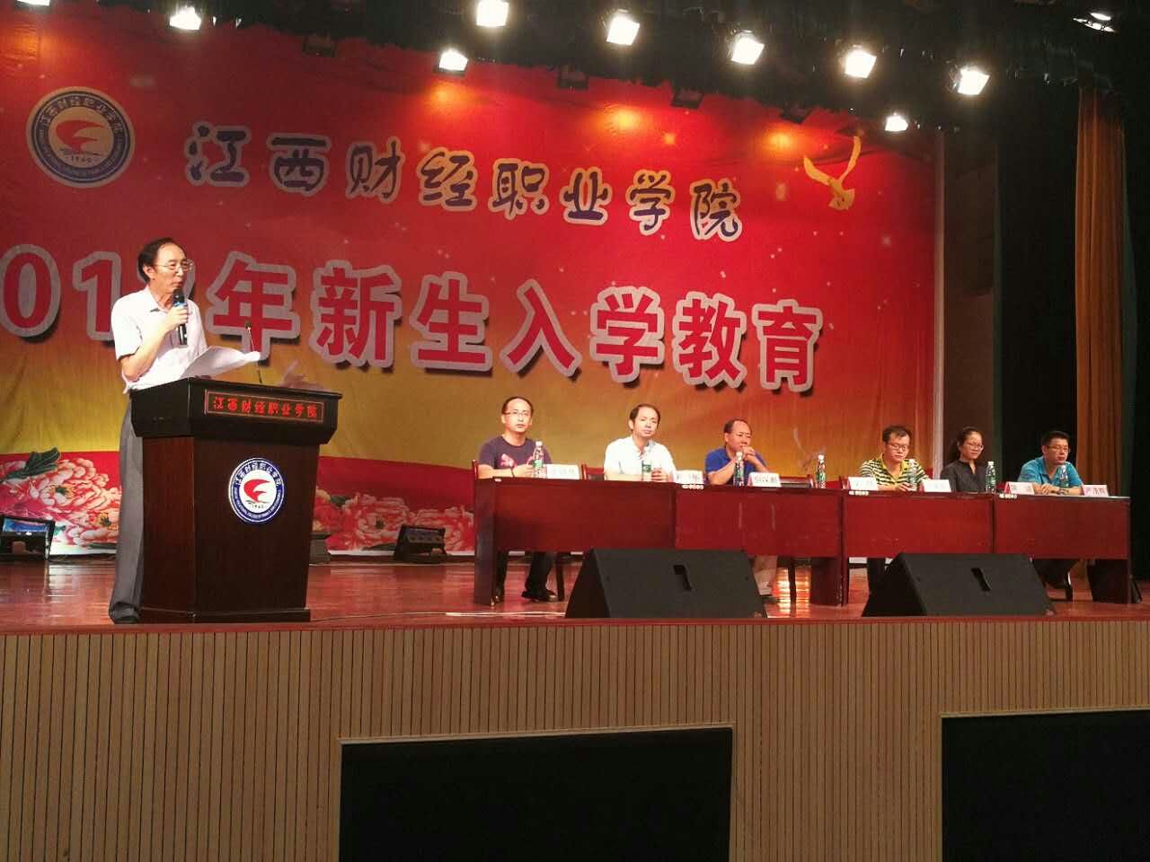 2017年9月4日晚7:00,经济贸易(旅游管理)学院按照学校统一部署,在校英才交流中心举行了2017级新生入学教育。出席此次会议的有:经贸学院吴炜院长、党总支书记但汉彪、副院长肖细根、院办公室主任崔晓慧、各个教研室主任、部分老师,学生会干部及2017级全体新生及班主任。大会由经贸学院副院长肖细根主持。