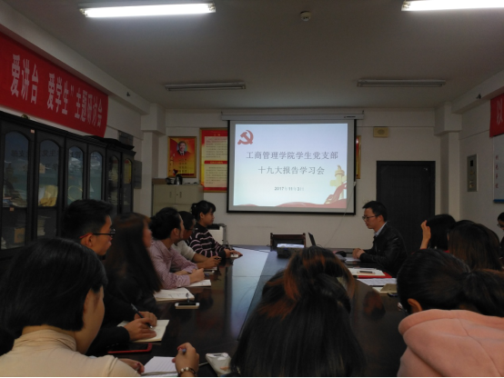 为庆祝党的十九大胜利召开,持续推进“两学一做”学习教育常态化制度化,工商管理学院学生党支部于近期采取多种形式组织学习了十九大会议精神。