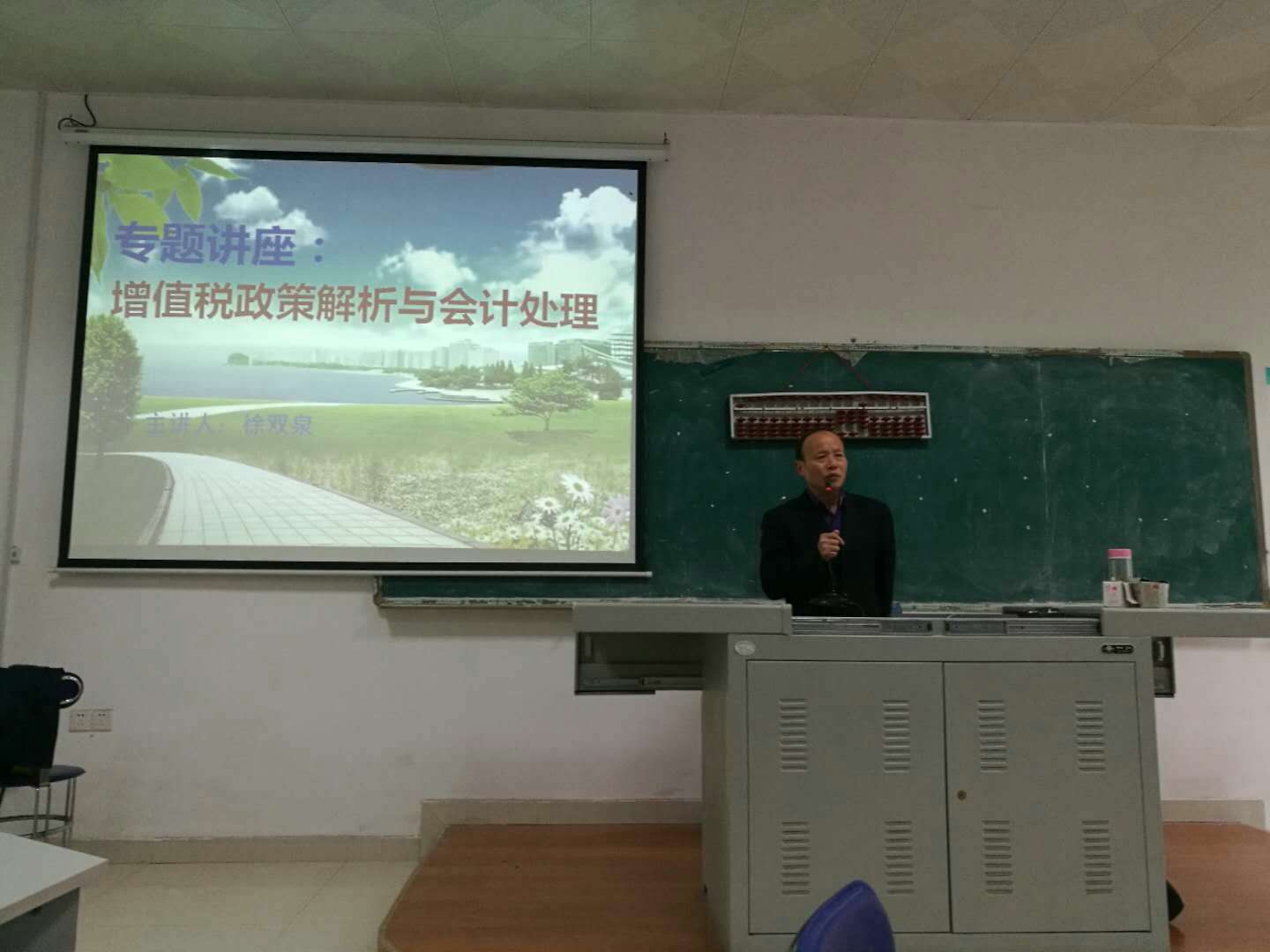徐教授的讲座主要从增值税的基本规定、增值税的计算方法与增值税的会计处理三个方面展开。讲座内容详实,理论联系实际,将近年来增值税的变化娓娓道来,让老师们享受了一场知识的饕餮盛宴。