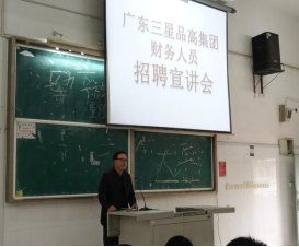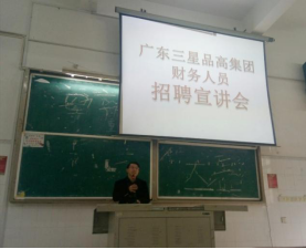 为及时推进beat365官网2018届毕业生就业工作,2017年11月7日下午16:30会计第一学院特邀广东三星品高集团再次来我院举行专场招聘会,这是继前年beat365官网与广东三星品高集团签订校企合作协议后,该集团第三次来beat365官网在应届毕业生中招聘财务工作人员。