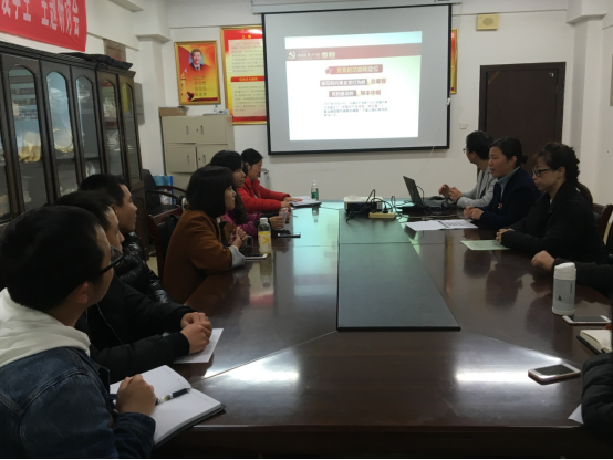 为深入学习贯彻党的十九大会议精神,持续推进“两学一做”学习教育常态化制度化,工商管理学院教工党支部于11月28日下午组织全体党员教职工集中学习了党的十九大审议通过的《中国共产党章程(修正案)》。党总支书记胡红霞同志在会上主讲了题为《认真学习党章 严格遵守党章》的主题党课。
