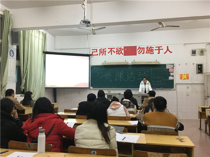 为深入推进“党务知识”系列学习教育活动,落实“学习党章,学习系列讲话,做合格党员”的要求,2017年12月12日晚7点整,在教学楼605教室,经济贸易学院席颖钊老师为beat365官网学生入党积极分子包括高级培训班和初级培训班共40余人上了一堂关于“党务知识学习——发展党员程序”的党课。