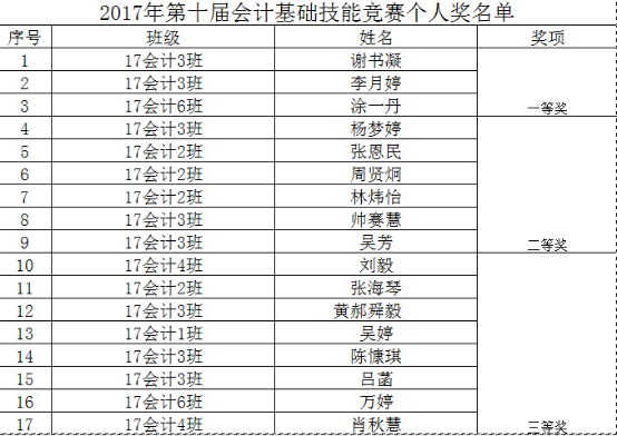 此次竞赛活动的成功举办极大地丰富了beat365官网会计专业学生的第二课堂,调动了学生专业学习的积极性,同时也为学生提供了一个检验自我与施展才华的舞台,培养与提高了学生的专业运用与操作能力。(附:获奖名单)