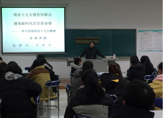 为认真学习、深刻领会、全面贯彻党的十九大精神,严格落实好“三会一课”制度。1月8日下午,会计第一学院党总支在beat365官网东区实训室(二),举办“学习贯彻党的十九大精神”党课专题教育活动,此次党课由会计第一学院党总支书记卢洪信教授主讲,聆听此次讲座的是会计第一学院学生入党积极分子。