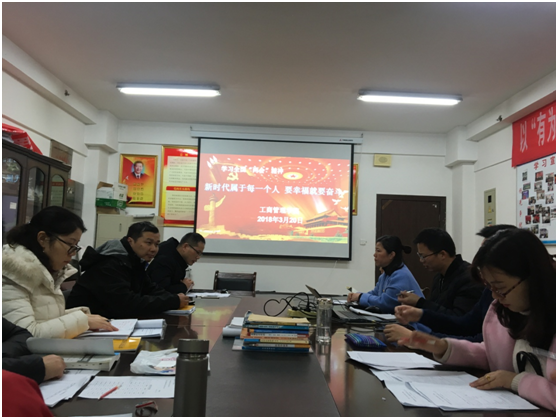 3月20日上午,第十三届全国人大一次会议在京闭幕,备受瞩目的2018年两会顺利落下帷幕。当日下午,工商管理学院迅速组织全体教职工专题学习了习近平主席在十三届全国人大一次会议上闭幕式的重要讲话精神。党总支书记胡红霞教授主持会议并讲话。