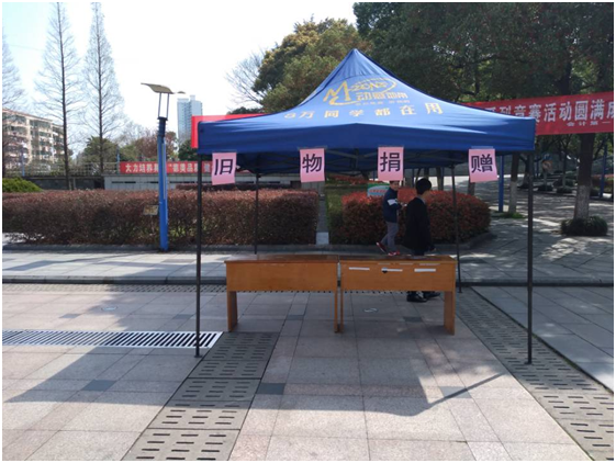 27日中午,志愿者们在学校喷泉广场“摆摊”继续宣传,并统一收集同学们捐赠的旧衣旧物。当天活动结束后,志愿者们将收集到的物品进行分类整理、打包,并捐赠给了浔阳区义工联合会。