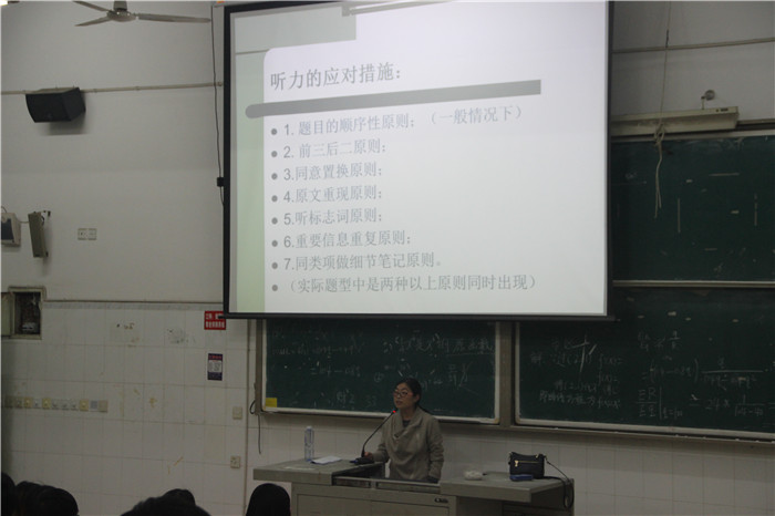 本次讲座是外国语学院根据教历安排开展的“英语点亮人生”系列活动之一,目的是帮助学生提高备考大学英语四级考试的效率。同学们在认真听完讲座后纷纷表示收益良多,希望以后学校能多开展此类活动。