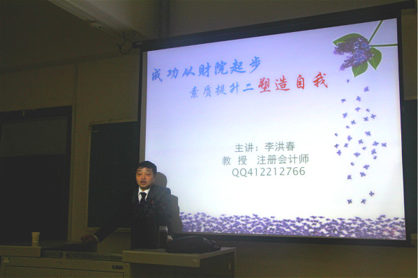 4月23日19时,会计第二学院在综合楼阶梯一教室举办“成功从财院起步系列活动之——塑造自我”讲座。本次讲座由会计第二学院院长、中国注册会计师李洪春教授主讲。会计第二学院2017级学生和会计第二学院部分教师聆听了此次讲座。