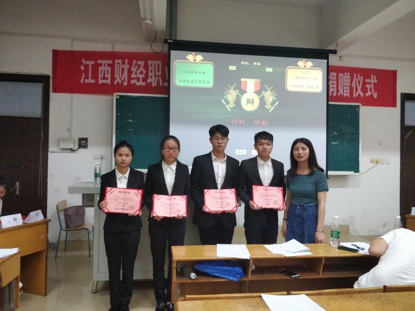 最终,17电子商务2班代表队凭借四位辩手敏捷的思维、雄辩的口才获得了此次辩论赛的冠军。