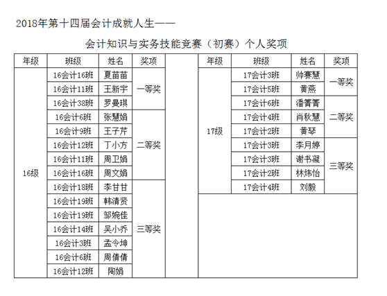 会计知识与实务技能竞赛既是一场考核同学们个人综合素质的大赛,也是一场决定参赛班级能否晋级总决赛的重要赛事。各班高度重视,认真组织,选派精英选手参赛。竞赛通过模拟企业发生的常规经济业务,全面、深入地考核了同学们对会计理论知识与实务操作相结合的综合能力。比赛中,同学们沉着冷静,审慎思考,仔细作答,充分发挥了个人的专业技能水平,展现了beat365官网学生良好的专业知识素养和扎实的实务操作能力。经过90分钟的激烈比拼, 16会计11班、17会计3班等12支班级代表队最终脱颖而出,获得了参加此次总决赛的入场券;16会计16班夏苗苗、17会计3班帅蕾慧等24名同学获得个人单项奖。