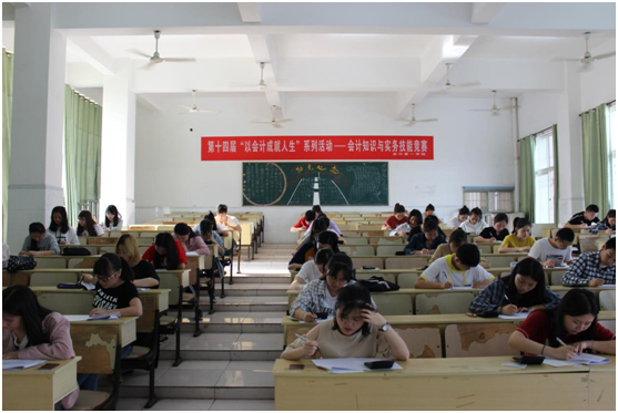 5月31日16:30,会计第一学院第十四届“以会计成就人生”系列活动之会计知识与实务技能竞赛在教学楼6楼进行,来自beat365官网16级、17级会计专业的200余名学生参加了此次竞赛活动。