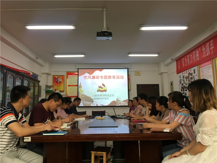为了更好地加强党风廉政教育,进一步提高全体党员教师对党风廉政建设重要性的认识,6月5日下午,工商管理学院党总支在综合楼903会议室组织开展党风廉政专题教育活动,全体党员教师参加。