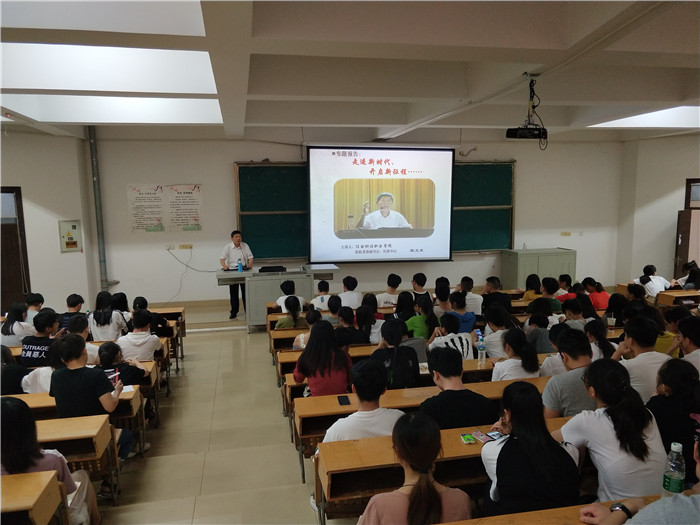 为深入推进“两学一做”系列学习教育,落实“学习党章,学习系列讲话,做合格党员”的要求,6月12日19时在综合楼阶梯教室6,经济贸易学院学生党支部邀请原校党委副书记、纪委书记陈卫东同志,校关工委副主任做“走进新时代、开启新征程”专题讲座。经贸学院学生党支部书记崔晓慧主持报告会,全院2017级300余名学生及全体入党积极分子聆听了此次讲座。
