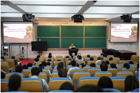 为深入贯彻十九大精神,准确把握十九大关于党建工作的新要求,坚持党要管党,全面从严治党,走在时代前列。6月19日下午,机关党总支在综合楼学术报告厅举办了专题党课讲座。讲座由江西省委教育工委组织部、江西省教育厅人事处调研员杨联愚同志主讲,校党委委员、副校长张成斌主持,机关党总支136位党员同志聆听了讲座。