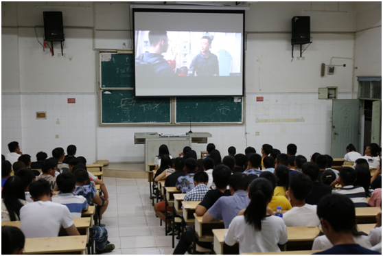 为教育引导新生有理想、有追求、有担当,把激昂的青春梦融入伟大的中国梦,坚定中国特色社会主义道路自信、理论自信、制度自信、文化自信,beat365官网组织2018级全体新生观看《红海行动》教育片。