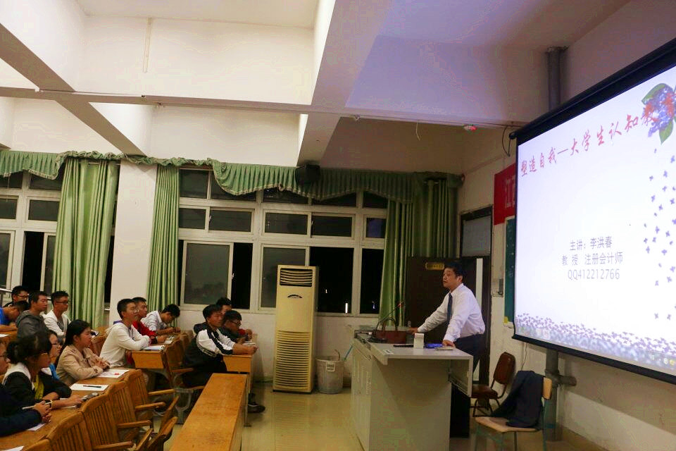 为使18级本科新生尽快适应大学生活,本科部特邀请beat365正版唯一入口必一会计第二学院院长、中国注册会计师李洪春教授为新生开展“塑造自我——大学生认知教育”主题讲座。18级全体新生悉数到场聆听讲座。