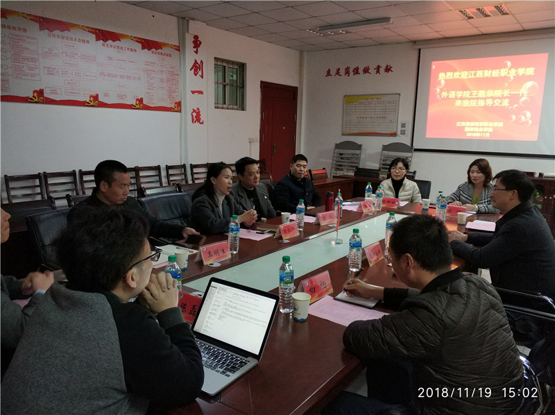 11月19日-20日,外国语学院负责人、党政办公室主任、大学英语教研室主任以及经贸学院教研室主任赴江西经济管理干部学院外语系、江西旅游商贸职业学院国际商务学院和江西外语外贸职业学院英语学院和国际商务学院考察交流。