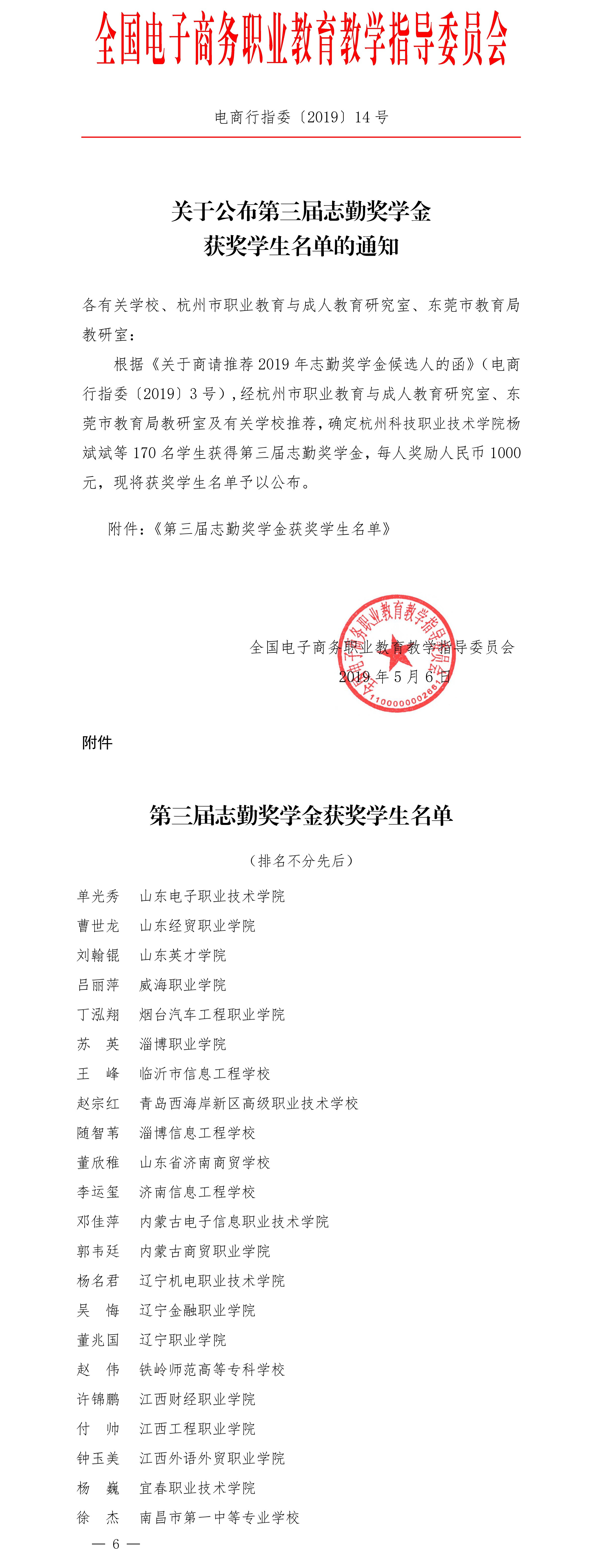 为激励广大学生努力学习、积极实践,引导和鼓励广大学生不断提升综合素质与技能水平。经全国电商行指委研究依据联考成绩、品学兼优的原则确定了第三届批志勤奖学金,beat365官网经济贸易学院2016级电子商务1班许锦鹏同学同学入围并获得“志勤奖学金”,奖励金额为1000元。