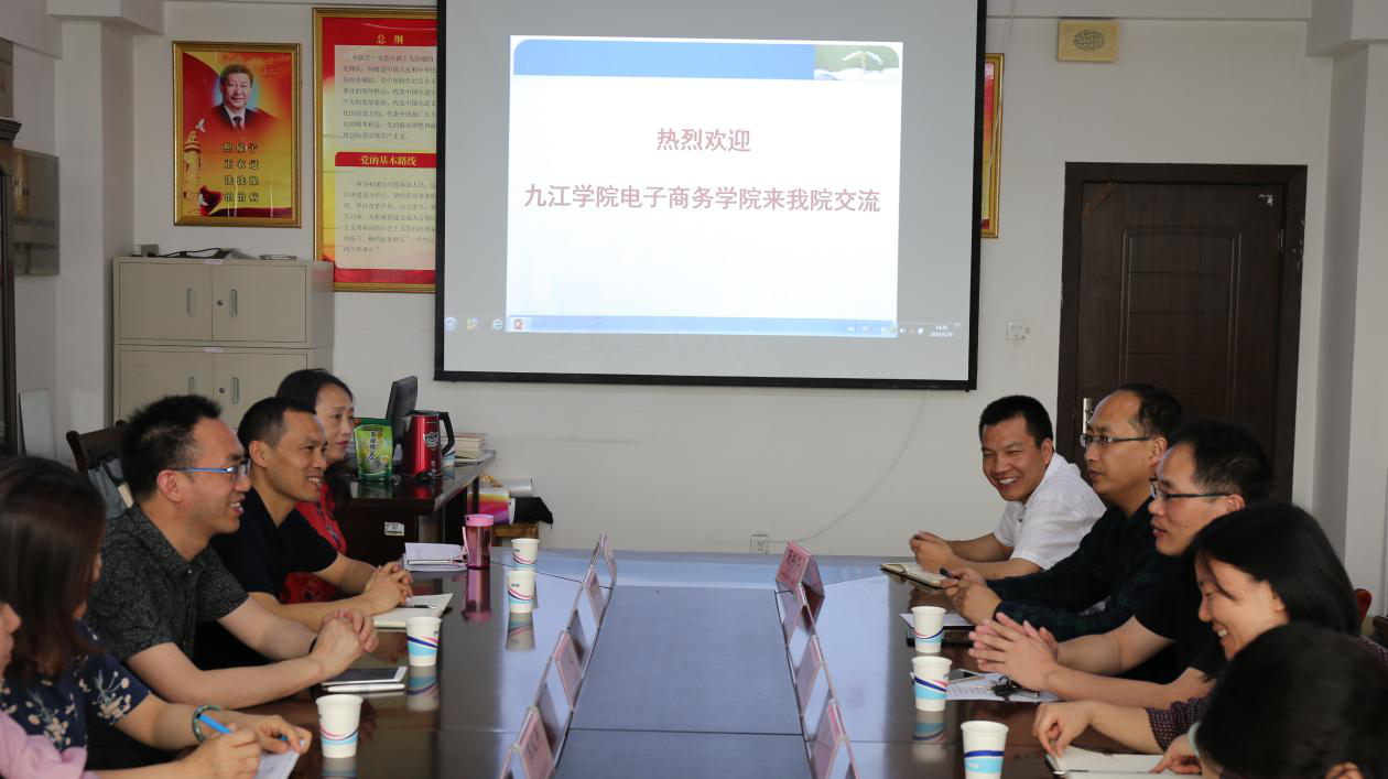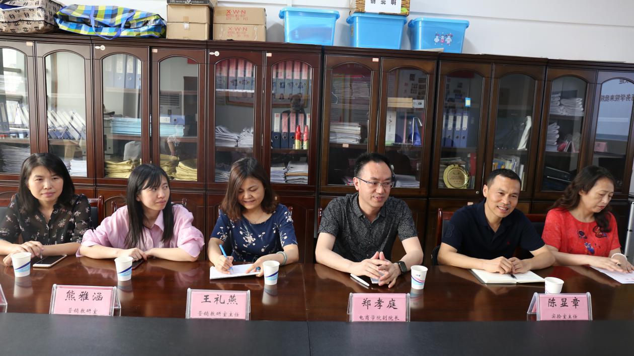5月29日,九江学院电商学院副院长郑效庭、市场营销教研室主任王礼燕、实验室负责人陈显章等一行来到工商管理学院进行交流。学院领导热情接待了郑院长一行,并在综合楼903办公室召开了交流会。经贸学院电子商务专业教师崔晓慧、工商管理学院市场营销教研室主任易娇艳、经济学教研室主任聂群华及市场营销专业教师黄博文、厉宗萍参加了交流会。