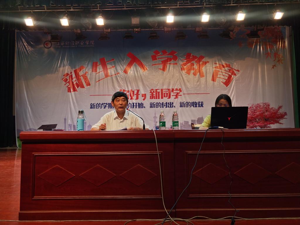 9月4日下午2点30分,在学校英才交流中心,经济贸易学院举办“不忘初心、牢记使命”主题教育系列活动,邀请了校关工委副主任陈卫东同志做“认真学习党的基本知识,努力提高思政治思想素质”专题党课。经贸学院党政办公室主任崔晓慧主持报告会,经贸学院2019级500余名新生及全体入党积极分子聆听了此次讲座。