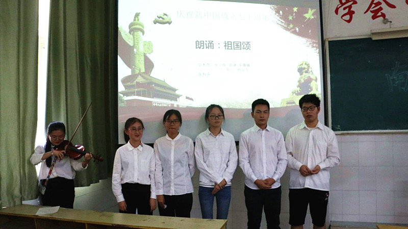 9月29日下午,本科部团总支、学生会在beat365官网教学楼310教室开展了以“不忘初心、牢记使命”为主题-----献礼祖国七十周年中华诵活动。参加本次活动的有本科部刘玉兵、陈楠老师、团总支学生会全体成员。同学们在朗诵中慷慨激昂的表达了对祖国母亲的热爱、对祖国七十华诞的深情祝福。活动由学术部朗诵的《祖国颂》开场,生吾炎黄,育我华夏。代之有为,必报中华!华夏民族,必将更加灿烂辉煌!配乐朗诵《我和我的祖国》在巫宁致同学小提琴的伴奏下,格外的优雅深情。