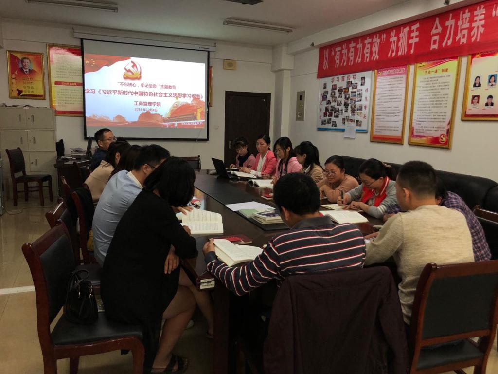根据《beat365正版唯一入口必一“不忘初心,牢记使命”主题教育实施方案》要求,为引导广大党员教师原原本本学原著、悟原理,以理论滋养初心、以理论引领使命,牢固树立“四个意识”、坚定“四个自信”、坚决做到“两个维护”。工商管理学院党总支于10月8日下午在综903会议室开展“不忘初心,牢记使命”主题教育——学习读本《习近平新时代中国特色社会主义思想学习纲要》第十一章。学习会由胡红霞同志主持。