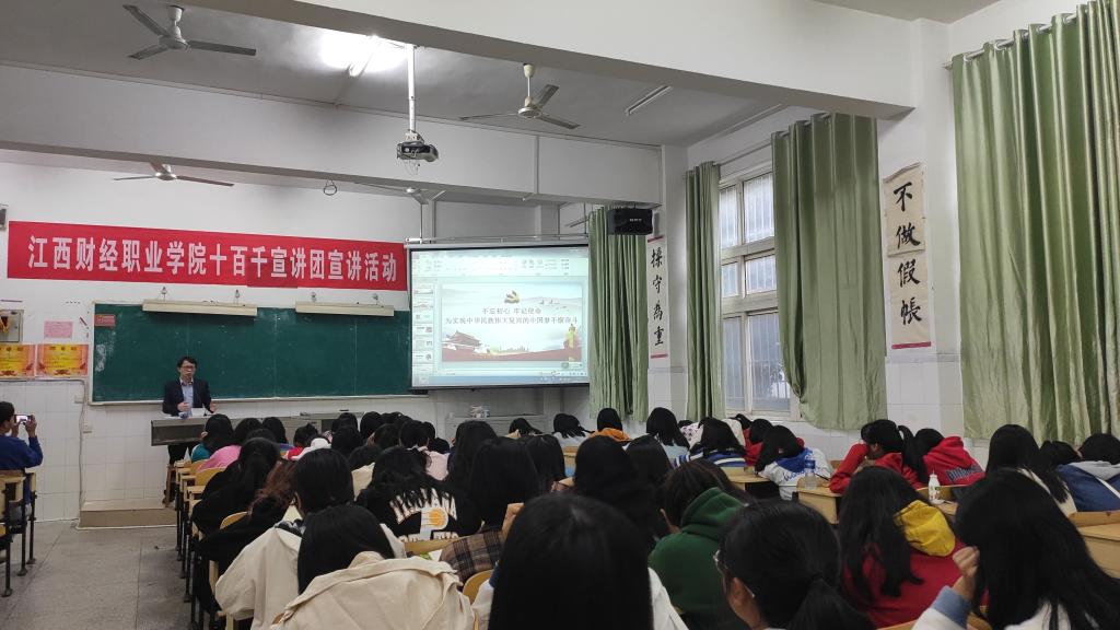 2019年10月16日下午,外国语学院在教学楼108教室举办“十百千宣讲团”宣讲会,外国语学院教工支部书记以“坚守初心,担当使命,砥砺前行”为题为2019级新生进行宣讲。
