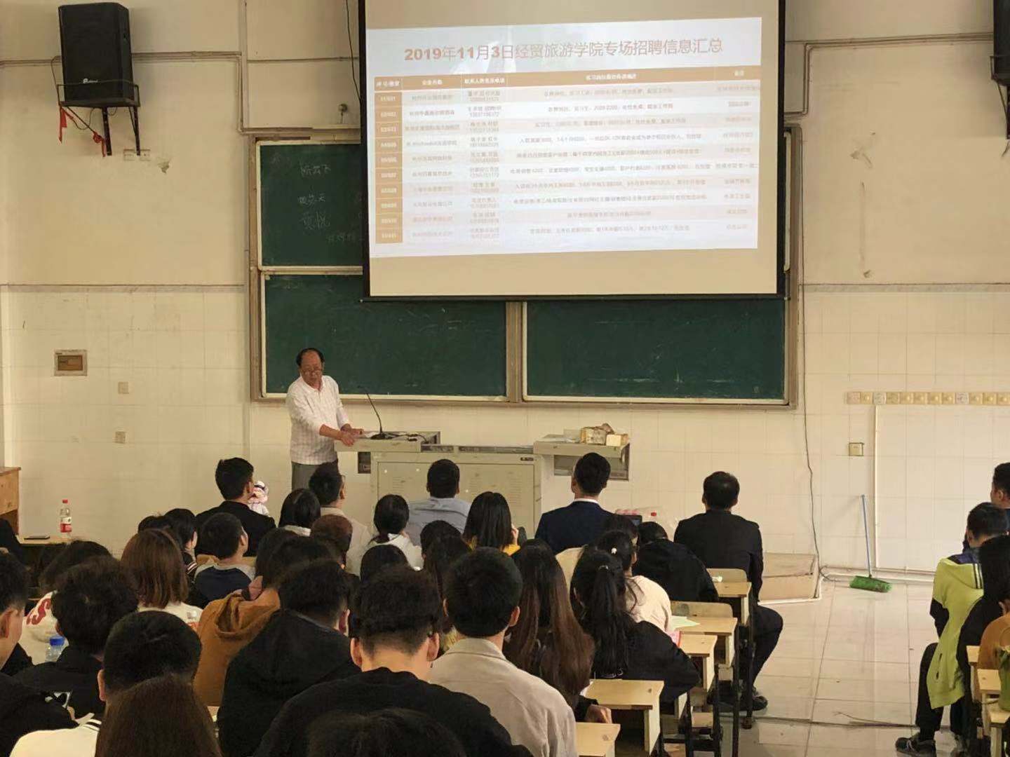 为进一步贯彻落实“不忘初心、牢记使命”主题教育,经济贸易学院深入调研学生所急所需,扎实推进学生就业工作。院领导多次赴杭州、上海等地考察联系就业单位,经过精心筹划,11月3日,经济贸易学院在教学楼6楼教室召开了学院秋季专场招聘会。本次招聘会精选了10余家对口企业,为同学们供了100多个就业岗位,涉及电子商务、国际经济与贸易、酒店管理、旅游管理等行业,经济贸易学院300多名应届毕业生参加了招聘会。