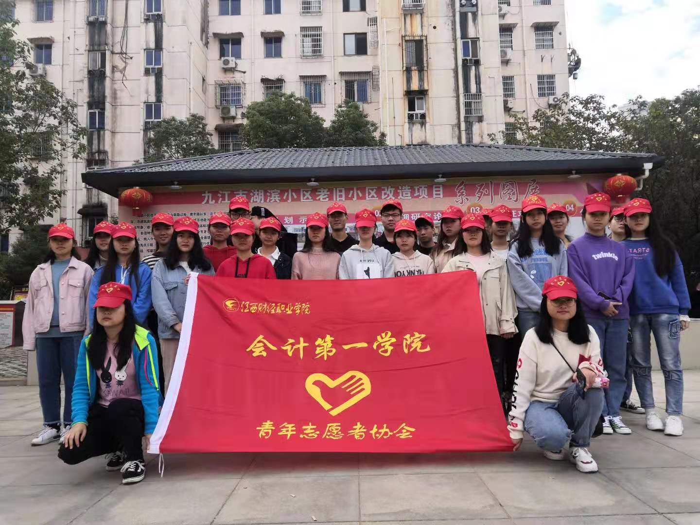 秋末冬初,为了构建美好社区,弘扬志愿服务精神,营造更好的社区环境。2019年11月23日上午9:00,会计第一学院组织志愿者开展了湖滨小区改造宣传活动。
