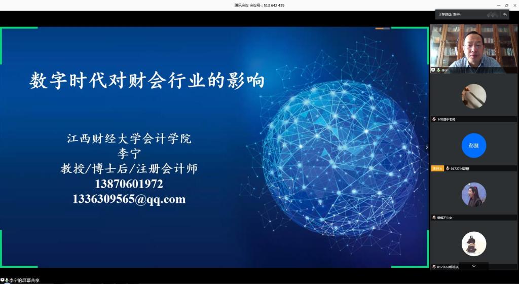 为使2017级应用型本科生更深入了解自己的专业,明确未来专业学习及就业方向,2020年4月26日,本科部诚邀江西财经大学会计学院副院长李宁教授通过腾讯会议平台举办了“会计学科前沿”专题讲座。本科部2017级全体学生及本科部部分老师参加。