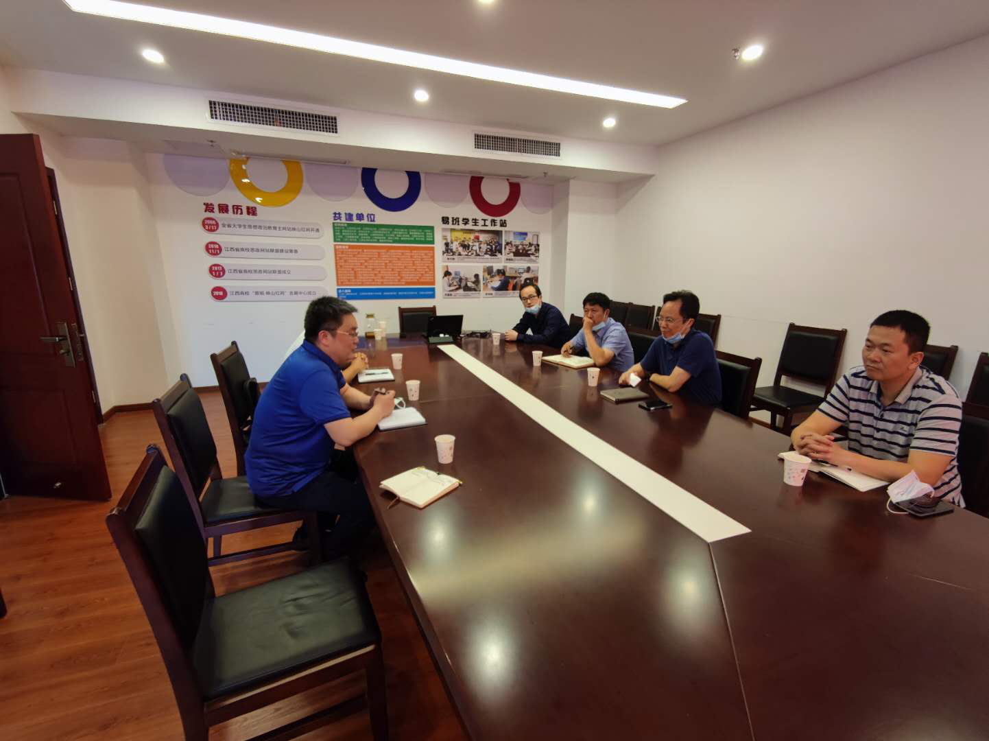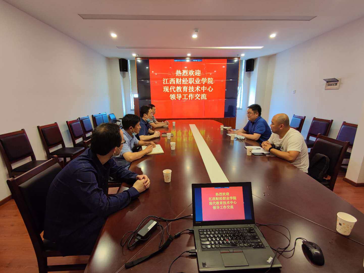 江西财经大学网络信息管理中心主任肖清雷、中心总支书记季小刚、副主任黄辉、黄剑等领导热情欢迎我中心一行的到来。在座谈会上,肖清雷主任首先肯定了beat365官网与江西财大的关系友好,合作密切,渊远流长,接着详细介绍了财大网络信息管理中心的发展历程、人员结构、工作职责、应用使用推广情况以及过去一年的主要工作。