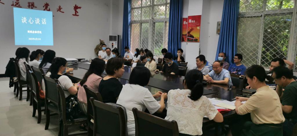谈心谈话制度是党的组织生活重要形式。为切实增强学院教职工凝聚力,激发干事创业热情,2020年6月23日,财税金融学院在红楼103开展和教职员工谈心谈话活动。